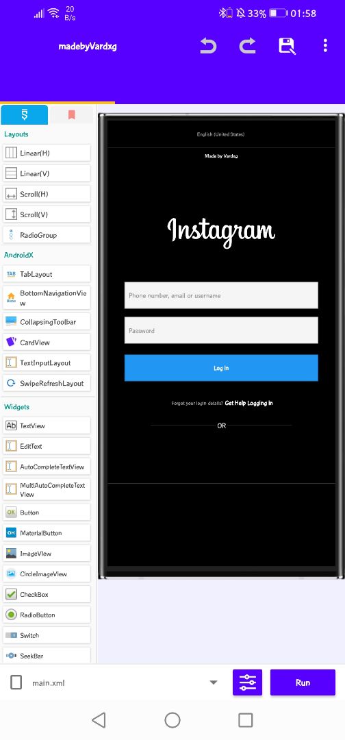 It is a simple login UI from the instgram login activity, if you like it let a like since we see us at the next project and download do not forget xD The project is free to use you can use it but if you will upload it again please give credits to me 🙏⚡