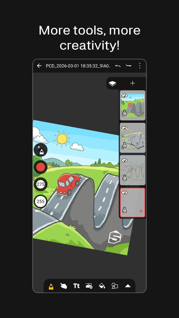 This project is an advanced canvas drawing application that offers a wide range of intuitive tools. You can draw with customizable brushes, use a smudge tool, fill areas with color, create geometric shapes, add text with imported fonts, insert images, and pick colors with an eyedropper. The app also includes a layer system that supports up to 30 layers, which makes it suitable for more complex and professional work. Your work can be saved not only as a PNG image but also as a project file. This allows you to reopen it later and continue exactly where you left off. You can also export your finished artwork to easily share it with others.