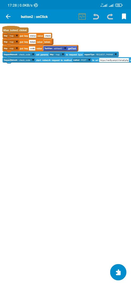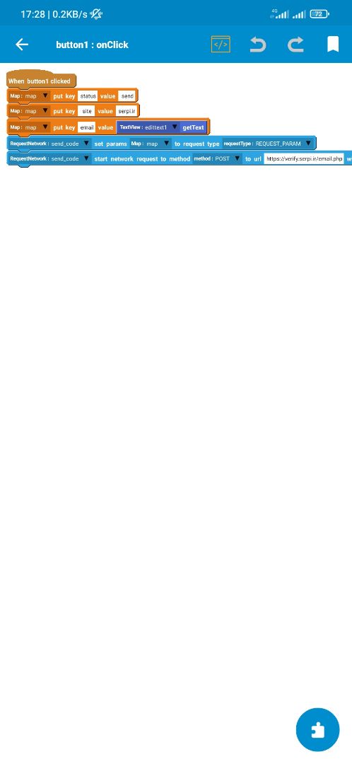 to send the code to the users, you need to get an input from them as an email and post this information status => send site => (here you must put your site link, if you don't have a site, you can use serpi.ir) email => (here you must enter the email entered by the user in the app) after sending these values to the site, you will receive one json output as a token, you must save it because it is necessary to determine the correctness of the code