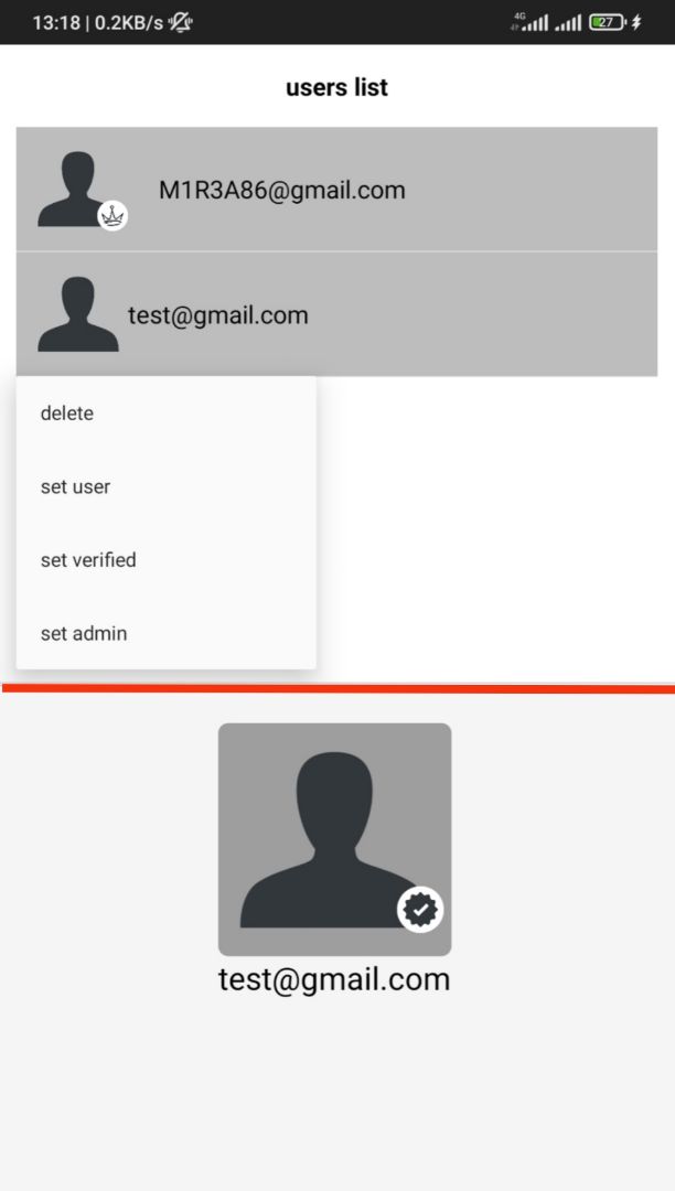 You can use this project: 1- Delete users 2- Admin users 3- Verify users 4- Removing user access and turning them into simple users
