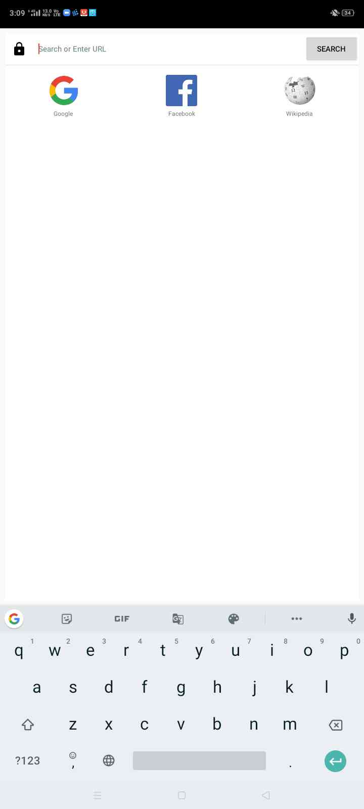Well designed Browser UI which contains google, Facebook, Wikipedia