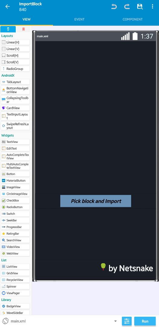 this is my old Project from Last year i was planing to share it for everyone but i didnt find the time to do it 😅 SORRY . so here we are the source goes from private to public so everyone can learn and benifit from it , anyway this project is about facilitate the processe of importing blocks from public sources or block from a friend or from whatever ... it will create a pallette for you with all the blocks you want to import with simple click . project can be compiled with any sk version ⚠️ please dont import watever json file my logic will not ditect every file , i did my best to make it safe , for me it has been a year of usage without any issue beacuse i know wich file i should import ...