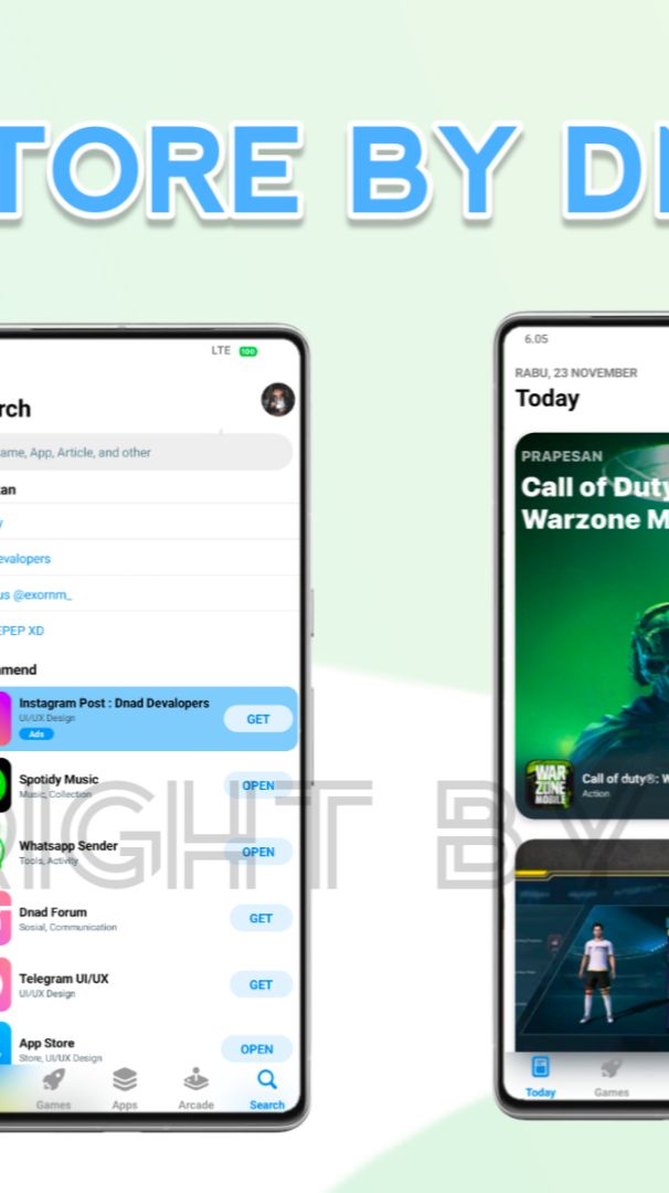 App Store UI/UX Full Futures : • Bottom Menu Like iOS (Blur) • Today List iOS • Game List iOS • Apps List iOS • Arcade (Empty) • Search List iOS • View App Today List • Profile iOS • Splash Screen