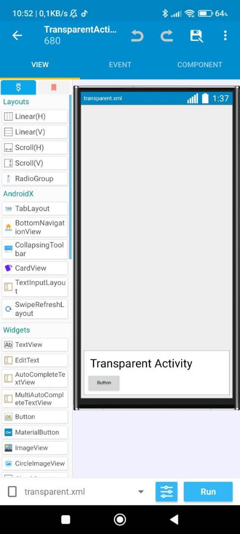 Transparent Activity in Sketchware Pro. -> No any libs -> No any java codes -> No custom blocks