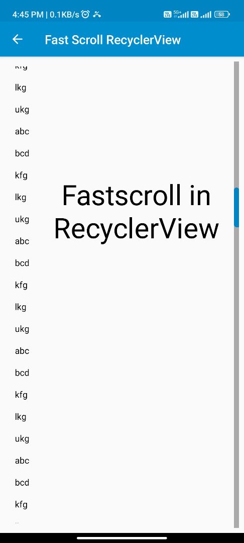 This Simple Project helps you to use Fast Scroll in RecyclerView. You can drag them and scroll the list. If You want the file separately present on my telegram - https://t.me/satyamtiwari2001