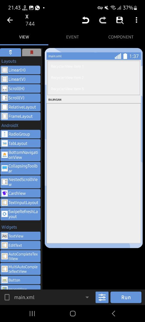 Material 1.9.0 Carousel RecycleView Fragment Sketchware Fu