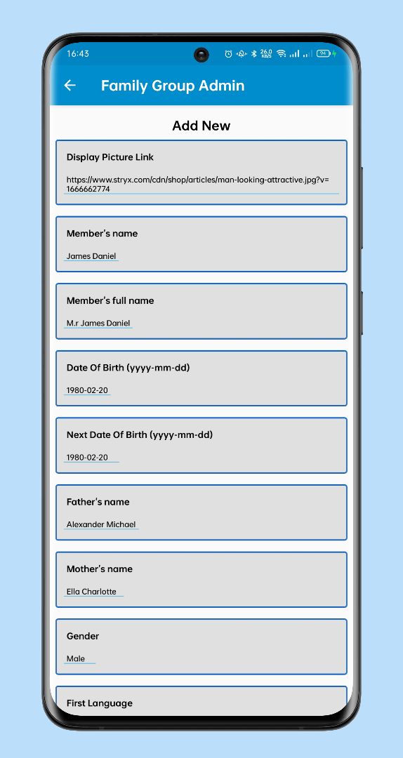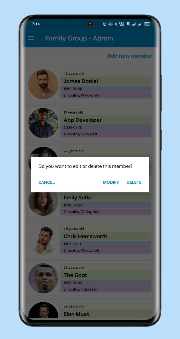This project is basically for your family members you can give them to your app in it them to this app and they can see how old is everyone in your family.