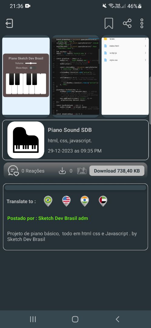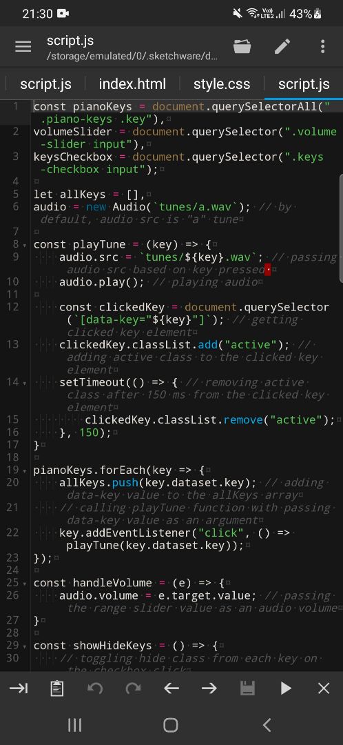 Projeto sketchware pro, todo em html css e Javascript, aplicativo de piano