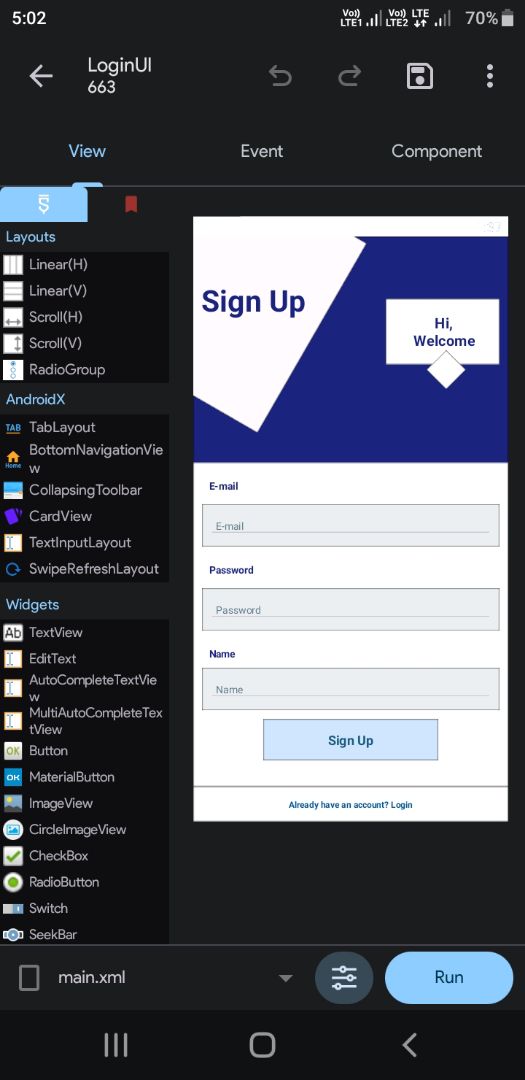 UI Login and Sign Up