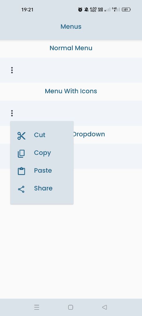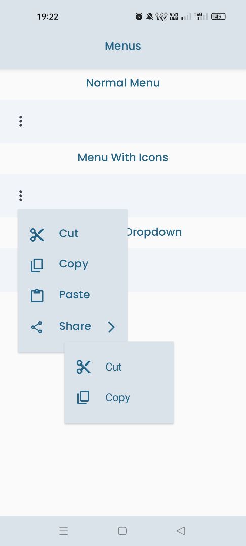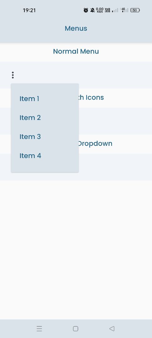 This is a demo project. The menus shown in the app works very well Simply save the widget and paste it anywhere in your app. Drop down menu is not available at this moment.We will add it soon...