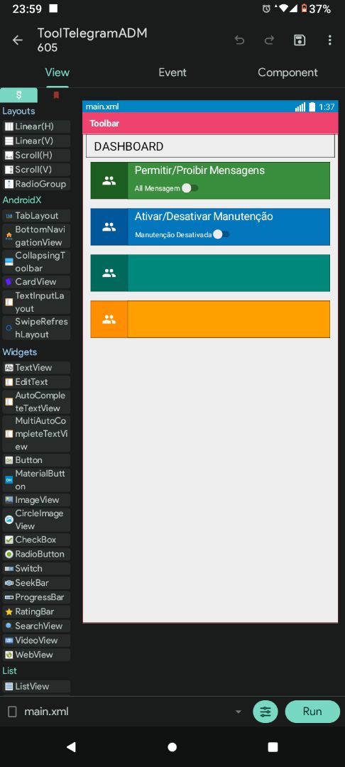 Aplicativo feito para administradores de grupos do Telegram, deixarei o código do Google App Script na descrição.