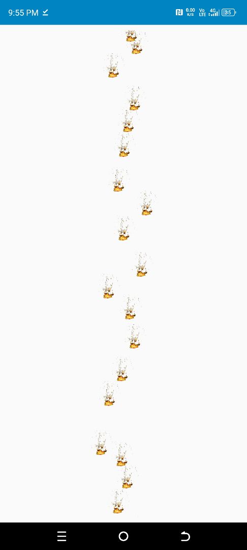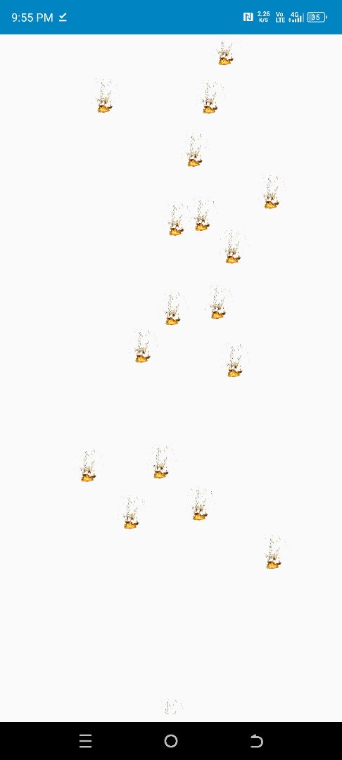 Particles are implemented using ImageView and animated with ObjectAnimator and AnimatorSet.