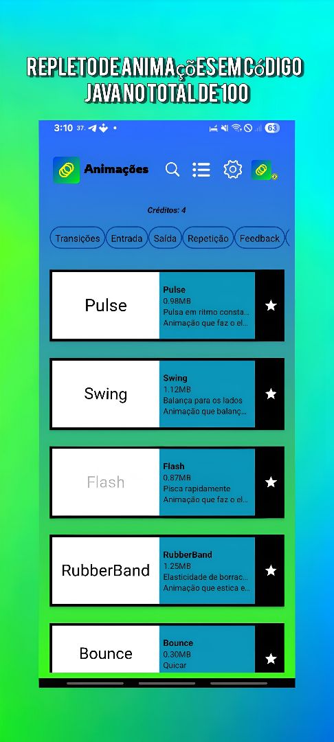 This app features 100 ready-made animations with Java code to make life easier for Sketchware Pro developers! See the effect, read the description, and copy the code directly into your Java personalized blocks