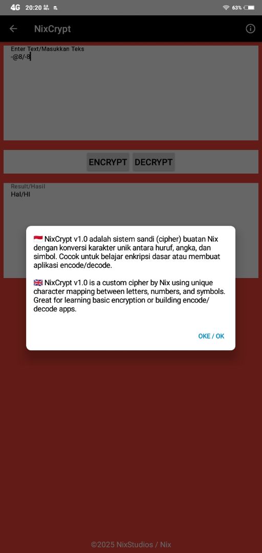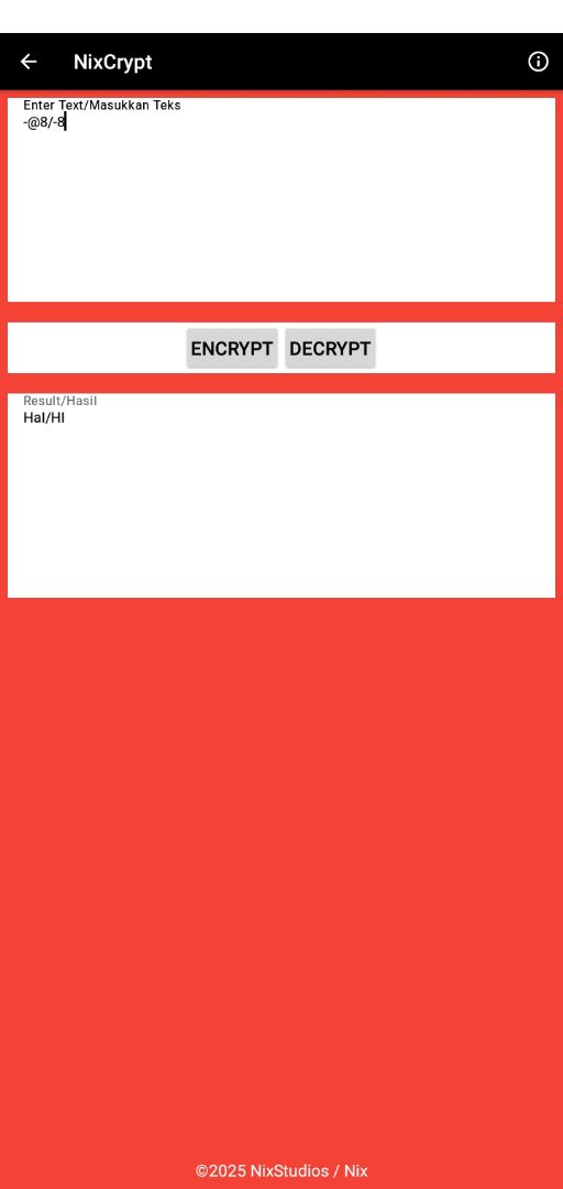 NixCrypt is a simple yet unique text cipher that replaces letters and numbers with specific symbols. Designed as a personal secret language, it allows users to encode messages for chats, notes, or documents. Its unique substitutions make texts hard to guess while keeping it easy to remember. Perfect for hiding short or long messages securely.