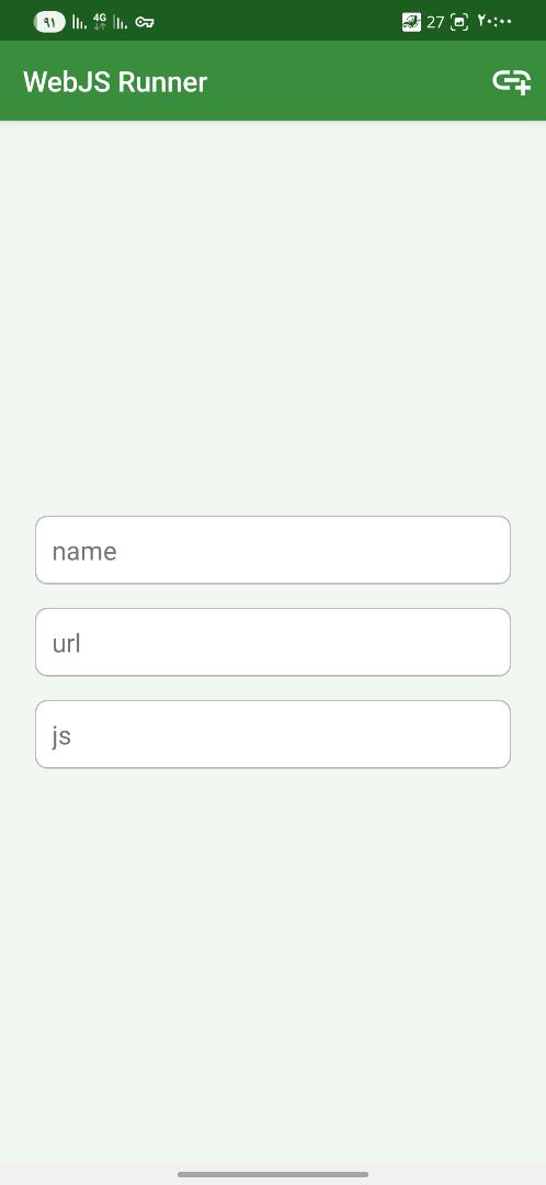 A lightweight Android app for running custom JavaScript on websites. Users can add site name, URL, and script, then execute the code directly inside the built-in WebView.