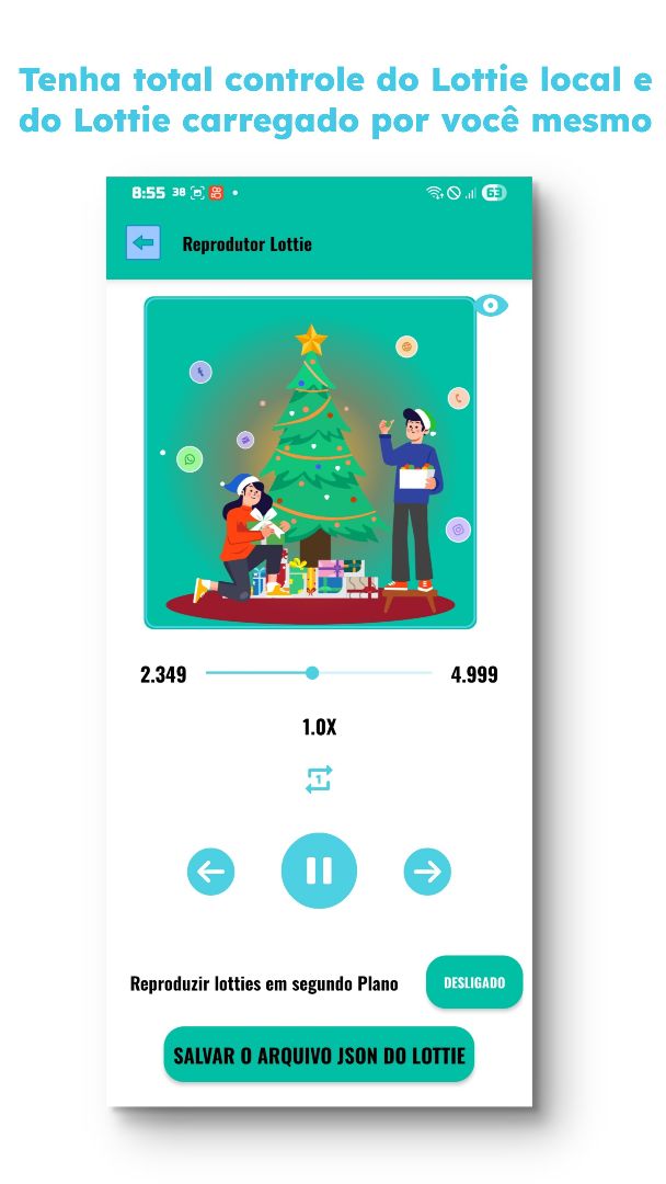 ✅ Have 100 Lotties loaded locally ✅ Original Lotties from LottieFiles ✅ Load Lottie JSON files in our Player ✅ Have full control of your Lottie in our Player ✅ Run any Lottie in the background, uploaded locally by yourself ✅ Partially Layout UX designer ✅ More complete configuration for your experience ✅ Anti-craches installed ✅ Get the local Lottie JSON file at any time ✅ Improved framerates and quality for local and self-uploaded Lotties ✅ Portuguese and English languages available