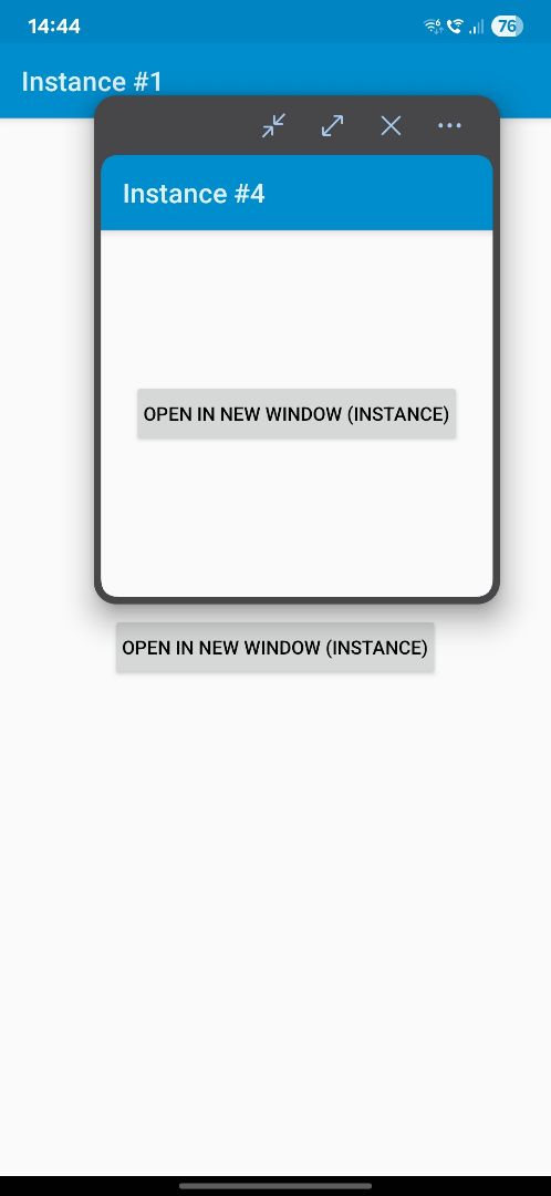 This project demonstrates how to launch multiple independent instances (windows) of the same activity in Android.