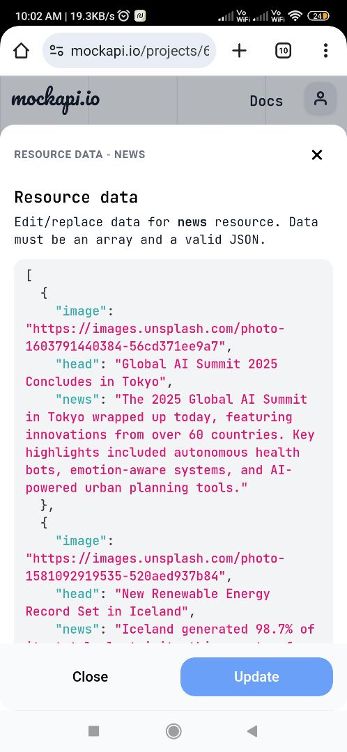 Using mockapi.io you can admin the news server for this app, currently it is using a test server. How to host is given in app.