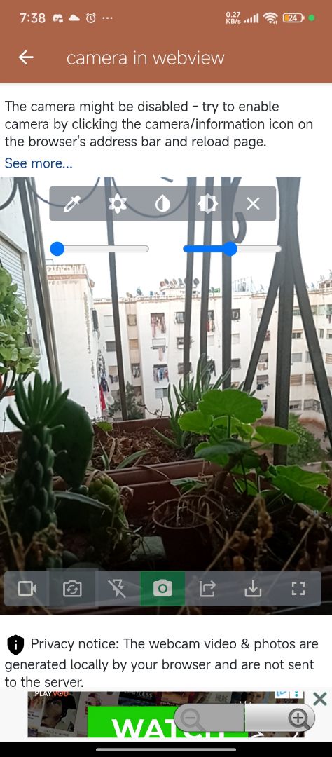 camera in webview If there is a site that needs the camera now, it can access it. Just enable the permissions and give some settings to the webview. And you're done.
