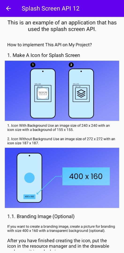 ✨ This is an example application that uses the splash screen API. The splash logo image size used in this project is 200 x 200.