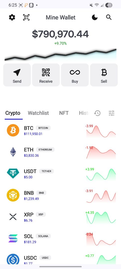 Advance Mine Wallet UI dark and light mode