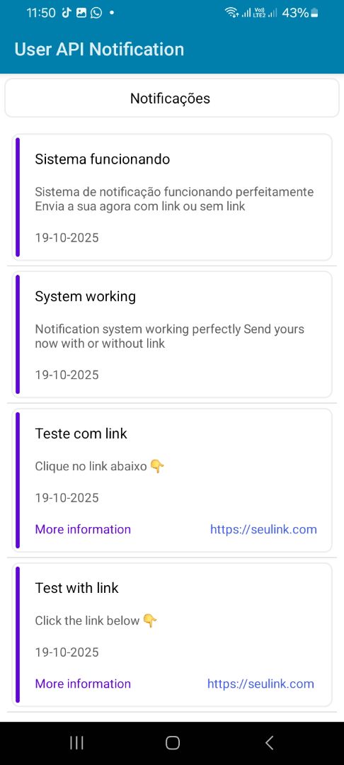 User API Notification Works perfectly. 100% Brazilian-made project and works with the Notification API.