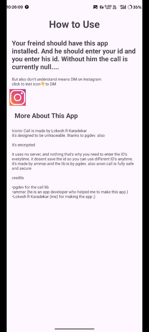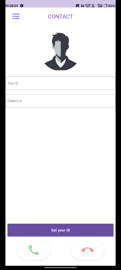 Your freind should have this app installed. And he should enter your id and you enter his id. Without him the call is currently null....