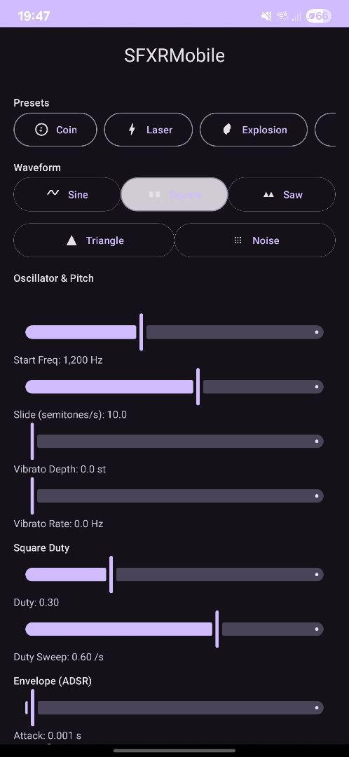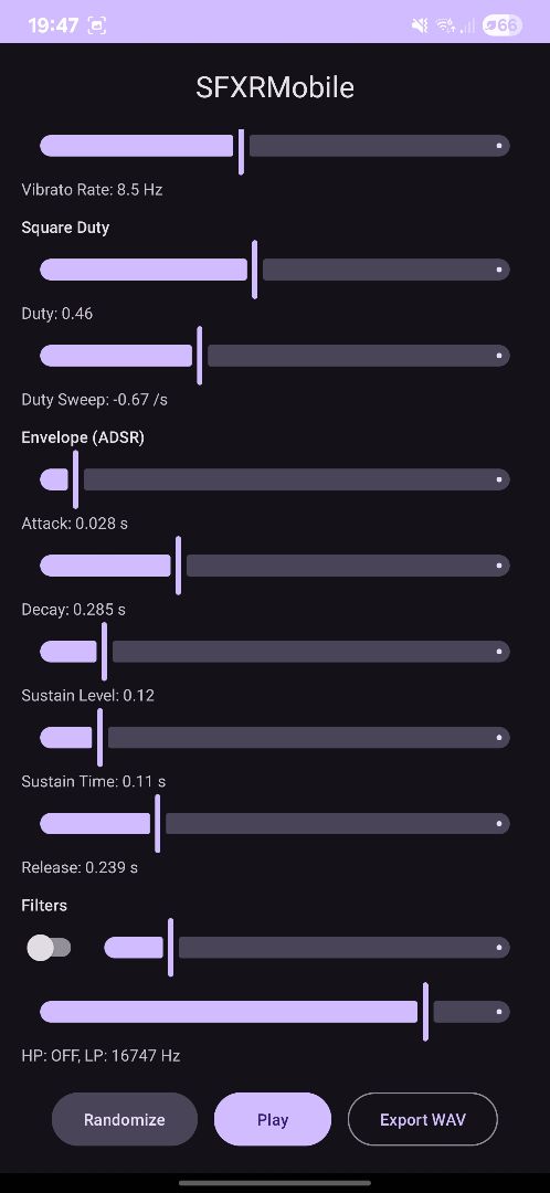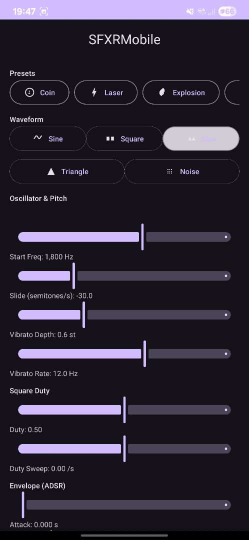 if u heard about Jsfxr than u knows about this also this is not web app it's fully java code and it's not madded for begginers only advanced one will understand my code and also i made it clean and add so much hints to u can understand.