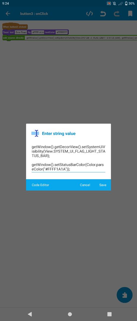 getWindow().setStatusBarColor(Color.parseColor("#FFFF1A1A"));