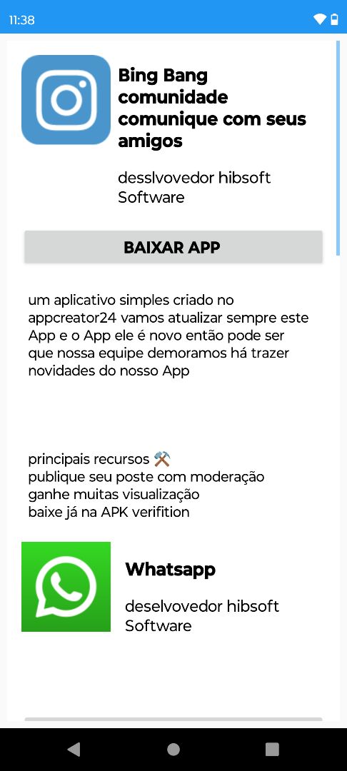 adicionados novo aplicativo whatsapp que eu fiz no appcreator24 e em breve mais aplicativo que vamos postar no nosso aplicativo aguarde para essas novidades