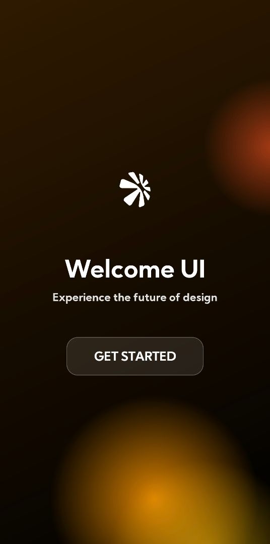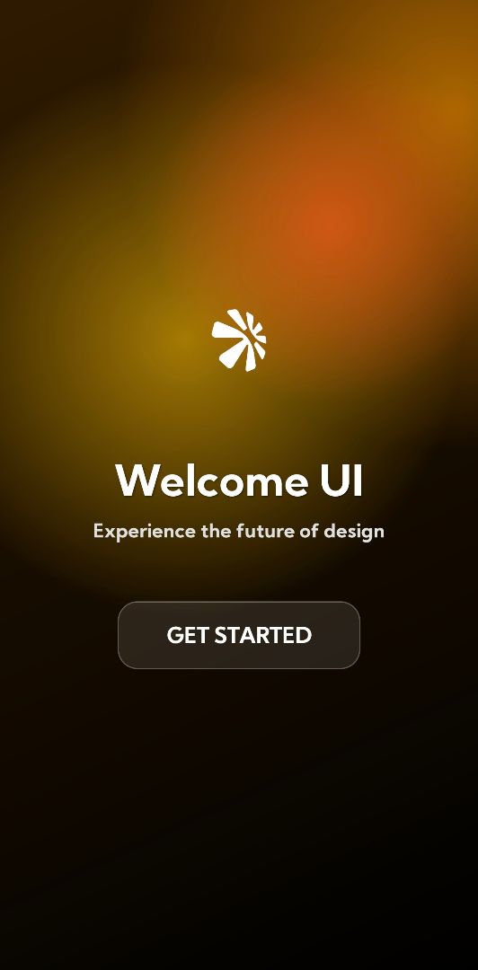Beautiful welcome screen with animated background, simple text and pseudo glassmorphism button.