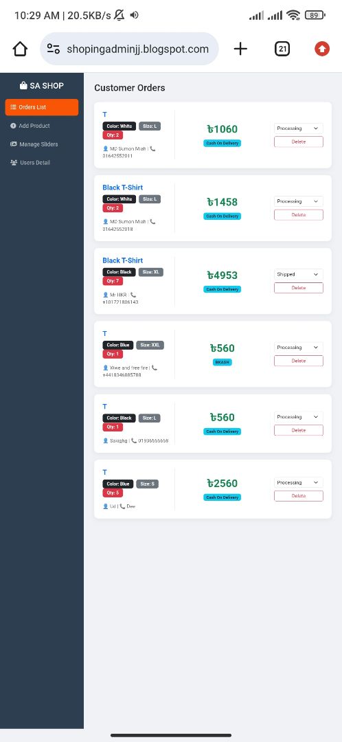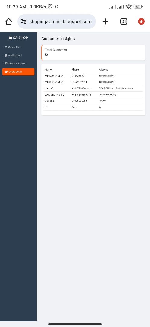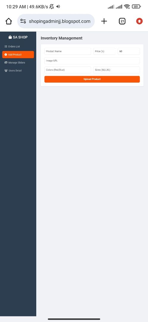 Sa Shop admin pannel web app