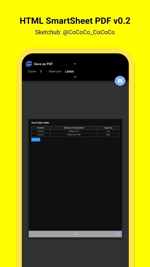 ⭐ It is a smart internal browser that displays an HTML page in the form of a table (like Excel) within a WebView, and can convert it into a real PDF using the Android system.