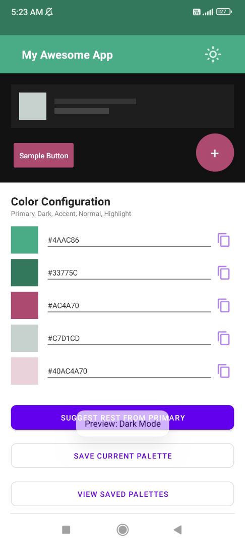• Dark Mode Toggle: Instantly preview how your accent colors perform on dark surfaces.