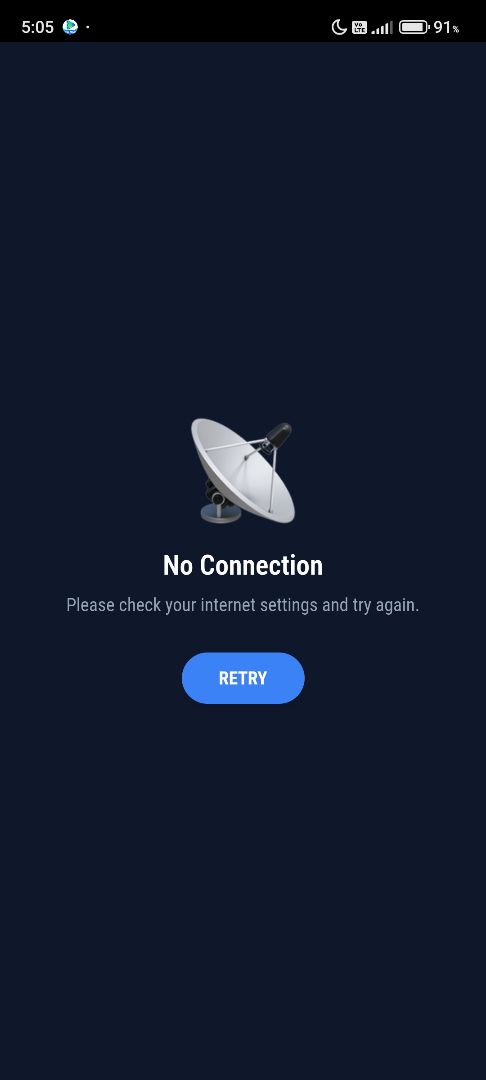 โ๐ก Custom Error Page: Professional dark-themed error page with a functional retry button.