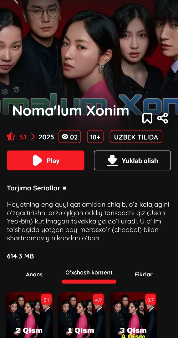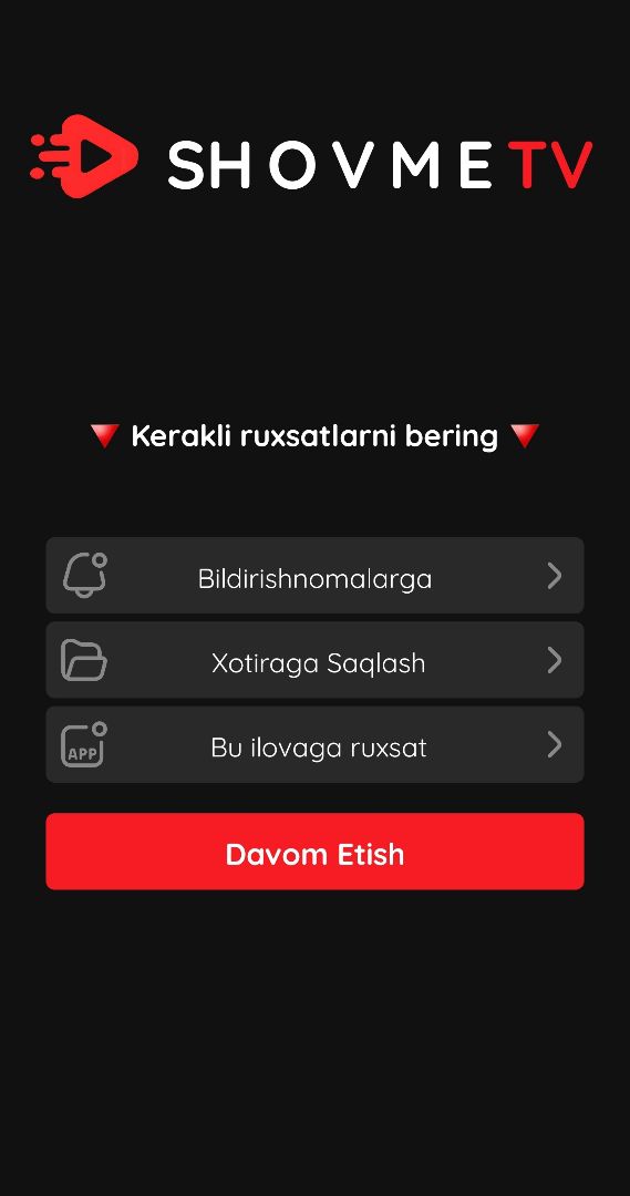 Sevimli kinolaringiz va eng so'nggi seriallarni endi bir joyda tomosha qiling! Shovme TV mobil ilovasi sizga yuqori sifatli video kontentlarni mutlaqo bepul va qulay formatda taqdim etadi. βAsosiy imkoniyatlar: βπ¬ Katta Kino Kutubxonasi: Dunyo tan olgan eng sara filmlar va trenddagi seriallar to'plami. ββ‘οΈ Tezyurar Pleer: Past internet tezligida ham qotmasdan ishlovchi maxsus texnologiya. βπ Ovoz Sifati: 10x ovoz kuchaytirish tizimi bilan har bir detalni aniq eshiting. βπ₯ Yuklab Olish: Kinolarni telefon xotirasiga saqlab oling va oflayn rejimda tomosha qiling. βπ« Reklamasiz Tizim: Filmni tomosha qilishga xalaqit beruvchi ortiqcha reklamalardan xoli interfeys. βπ Qulay Dizayn: Ko'zingizni charchatmaydigan "Dark Mode" va tushunarli menyu. βShovme TV bilan uyingizni haqiqiy kinoteatrlarga aylantiring! Hozir yuklab oling va sifatli kontentdan bahramand bo'ling.