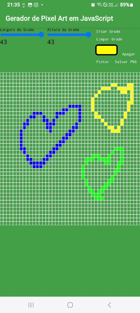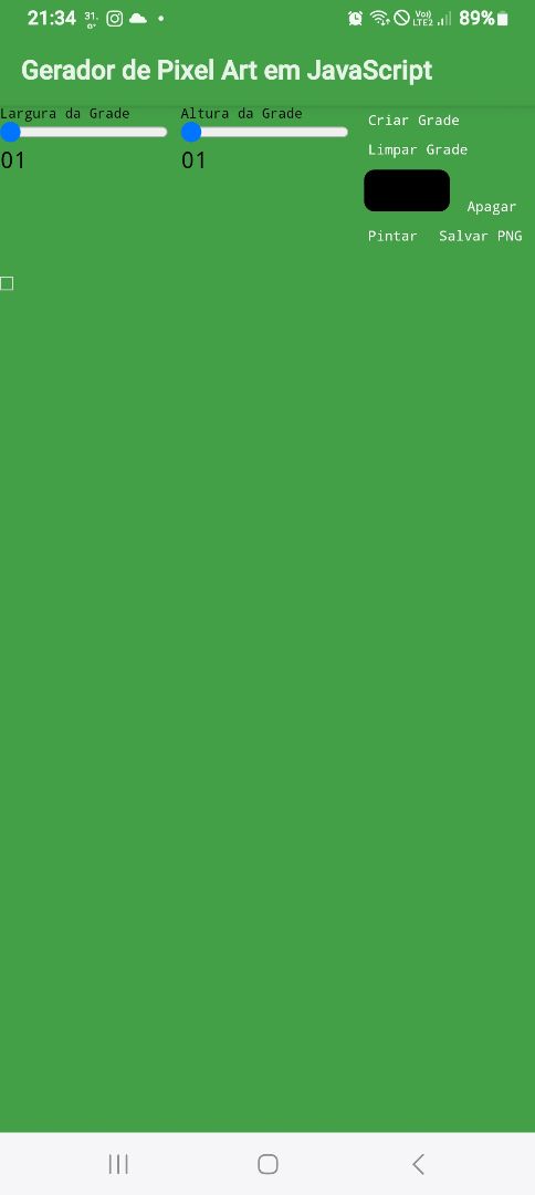 1 - Pixel art in JavaScript 2 - Drawing in squares 3 - Color selector 4 - Height and width selector 5 - Download the image drawing
