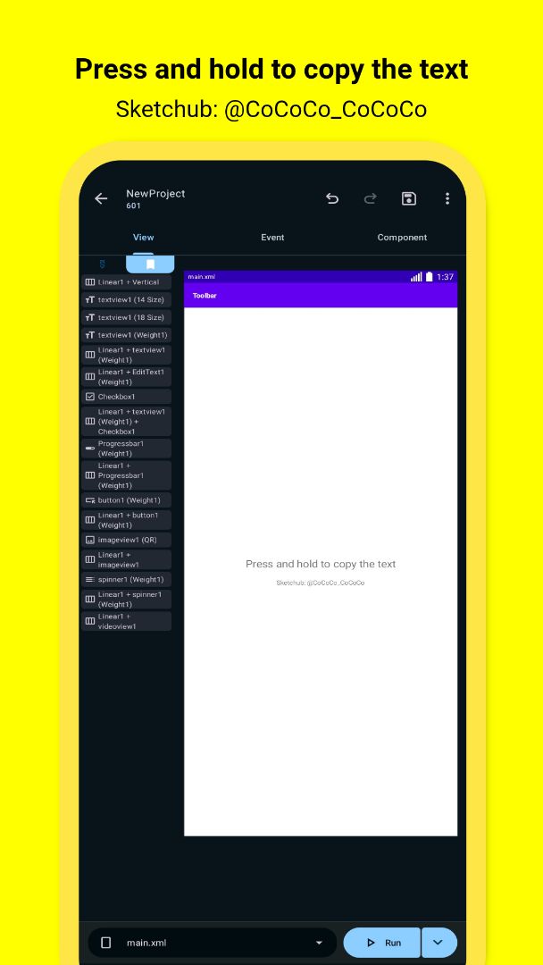 🔶 CopyTextView library for copying TextView text on long press in Java (Sketchware Pro)