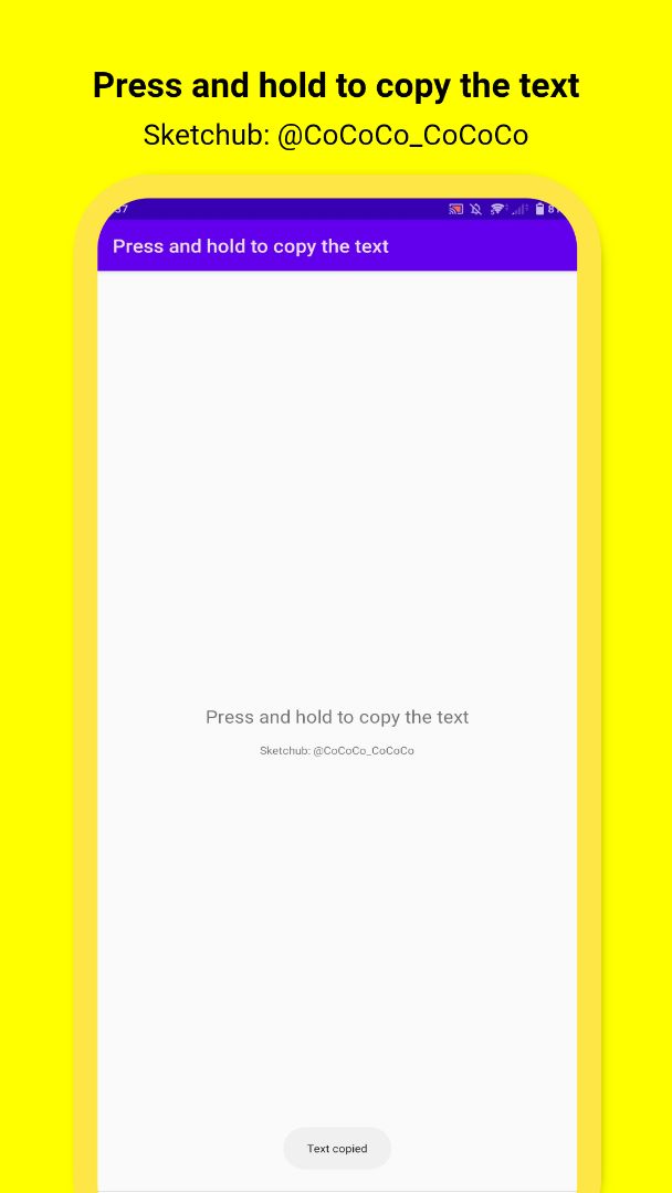 ⭐ Easily uses any TextView ⭐ Relies on ClipboardManager for text copying ⭐ Displays a toast message after copying ⭐ Can be added as a library and reused in multiple places