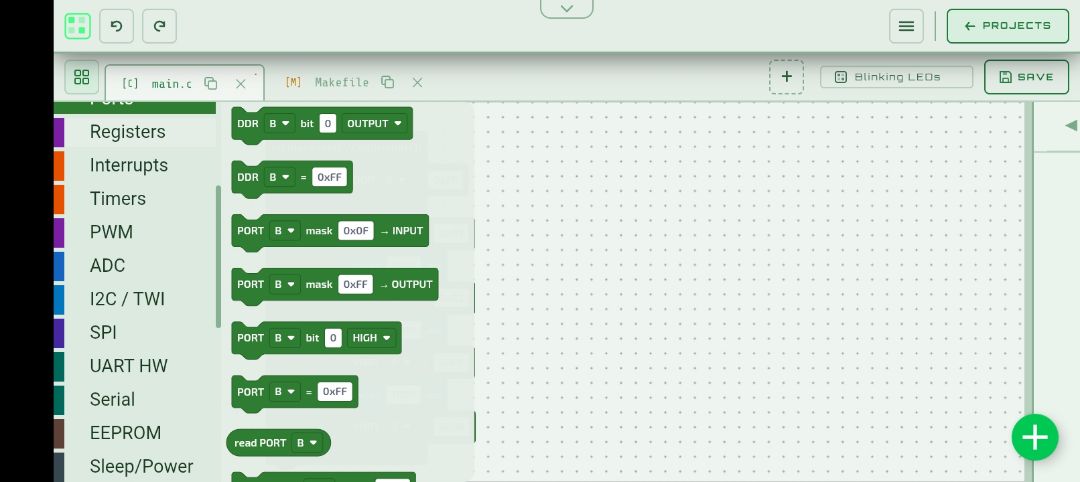 In this project you can write code for AVRs, same like sketchware by using blocks, For Blocks Google's Blockly library is used. And HTML page is made with Claude.ai