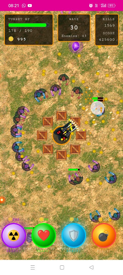 Unlimited levels several types of upgrades including drones and crates use of nuke,bomb,shield and health 9 types of enemies buy background and gun skins and more!