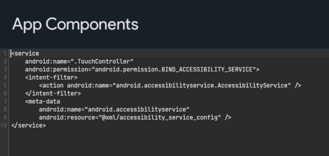Using the accessibility service, it controls screen touches.