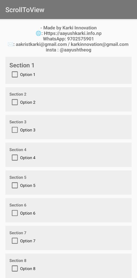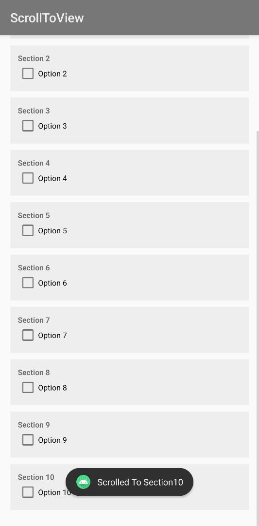 🎯 Purpose: The main goal of ScrollToView is to provide a simple and reusable solution for developers who want precise control over scroll behavior in their Android applications without writing complex code each time.