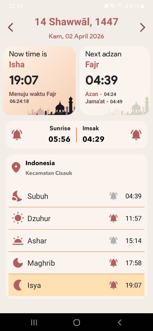 🕰 Accurate Prayer Times Daily prayer schedules according to your location in Tangerang complete with adhan reminders so you don't miss them.