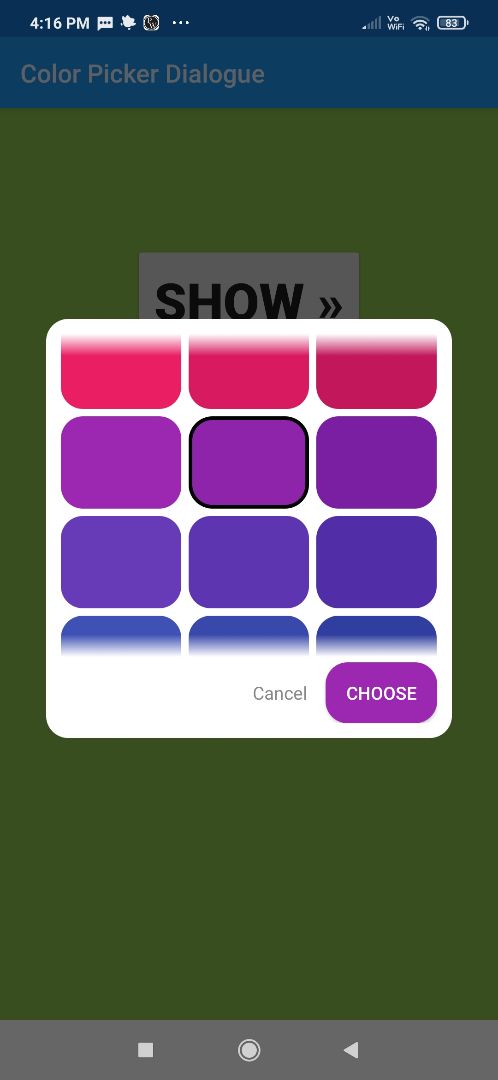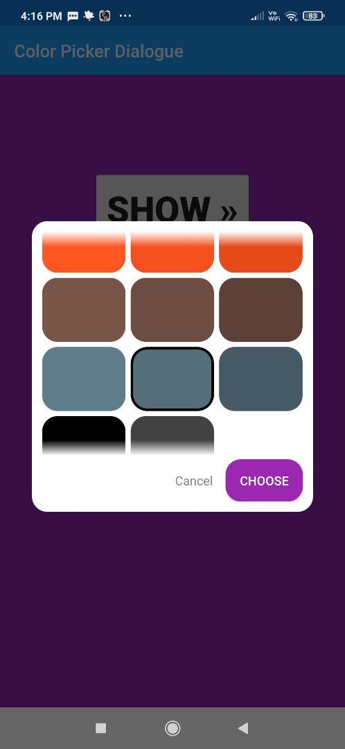 Very simple color picker dialogue with Selection indication, blur effect, pallet style system