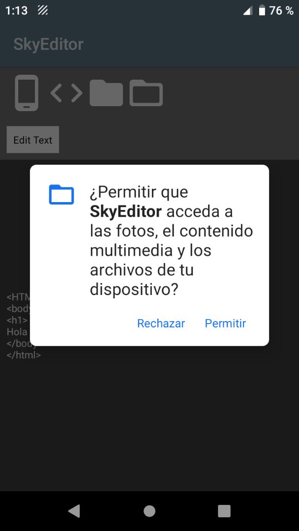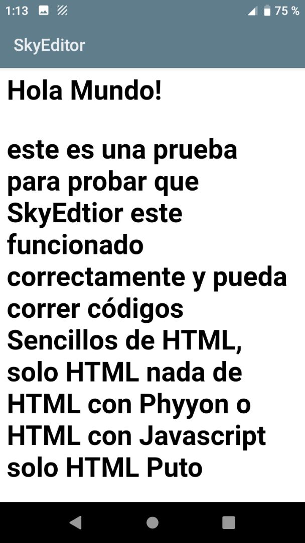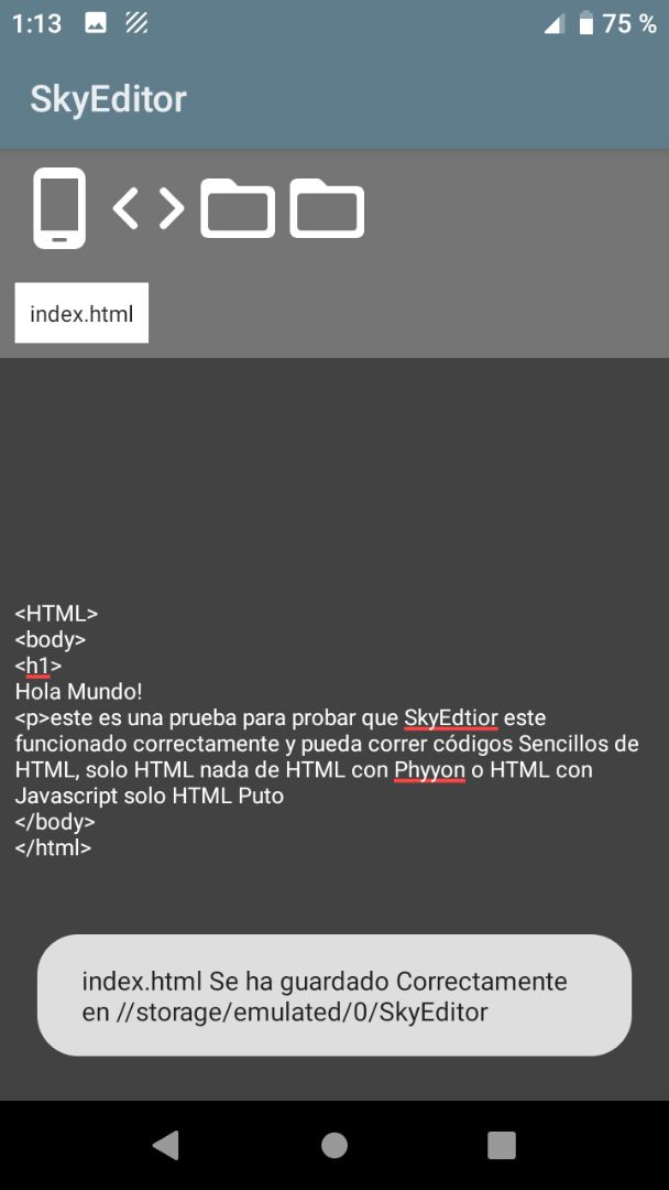 SkyEditor Es un editor de Código, este editor de Código lo único que puede soportar es HTML Nada de HTML con Javascript, HTML con Phyton, solo admite HTML puro