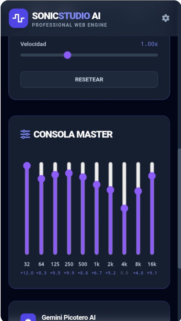 Sonicstudio es un Ecualizador sencillo, con funciones realmente buenas, bas bossted, audio 3D, tono, velocidad y mas