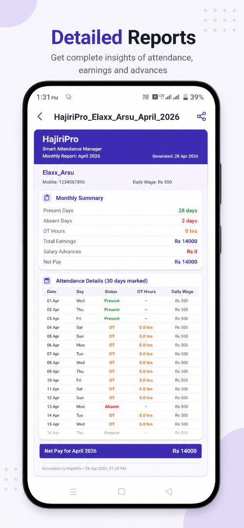 π Why HajiriPro? Simple & Clean UI Fast Performance Accurate Calculations Perfect for Daily Wage Workers
