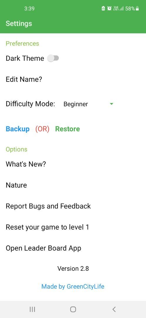 Plant it! app by Green City Life. Play the Game, Learn some info about nature by clicking nature button. Just win level 1 to unlock nature button. In plant it! you have 3 hearts, 1 minute timer and the goal depends on your mode.