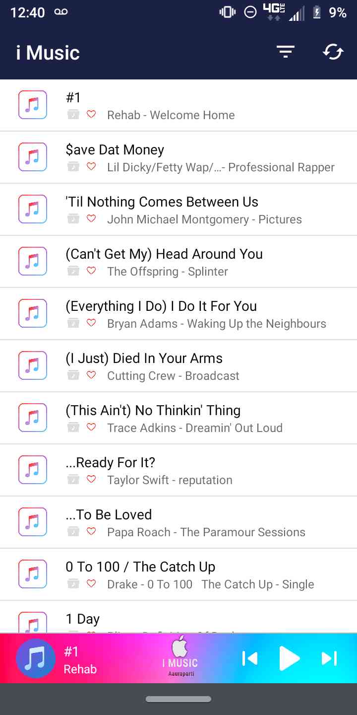 I Music lets you play your stored music files from your device